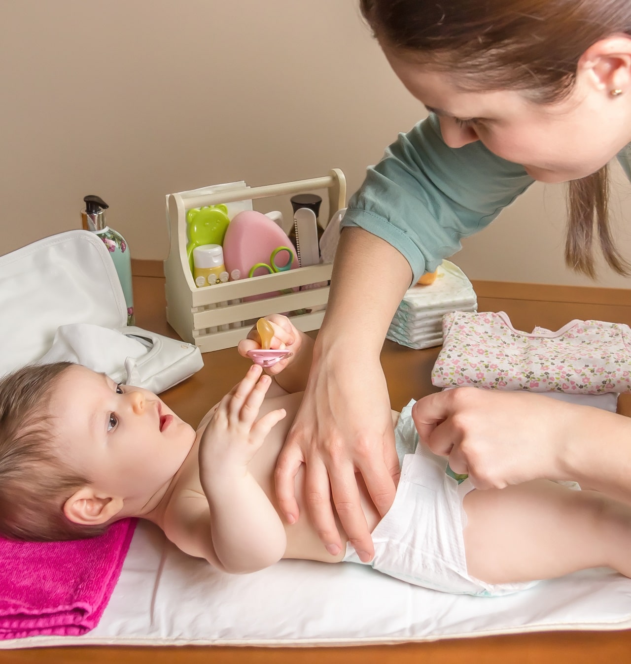 - Take three deep breaths to become calm and present. When you feel stressed your baby will feel it and may get squirmy and fussy which makes changing his diaper harder!